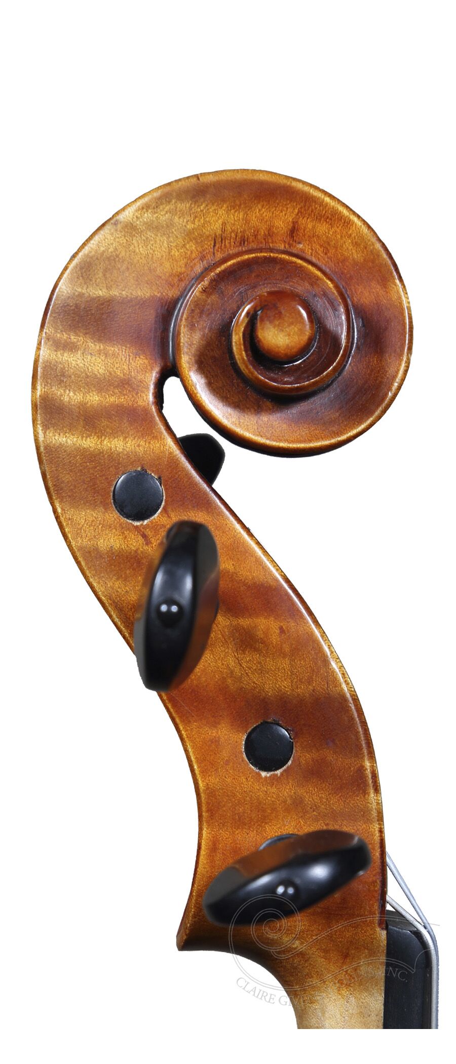 This is a beautiful example out of the highly acclaimed Scott Cao workshop. Showcasing their beautiful wood choice is a tastefully applied golden-brown varnish. Its sound is open, colorful, and responsive. A great violin for the advancing student.