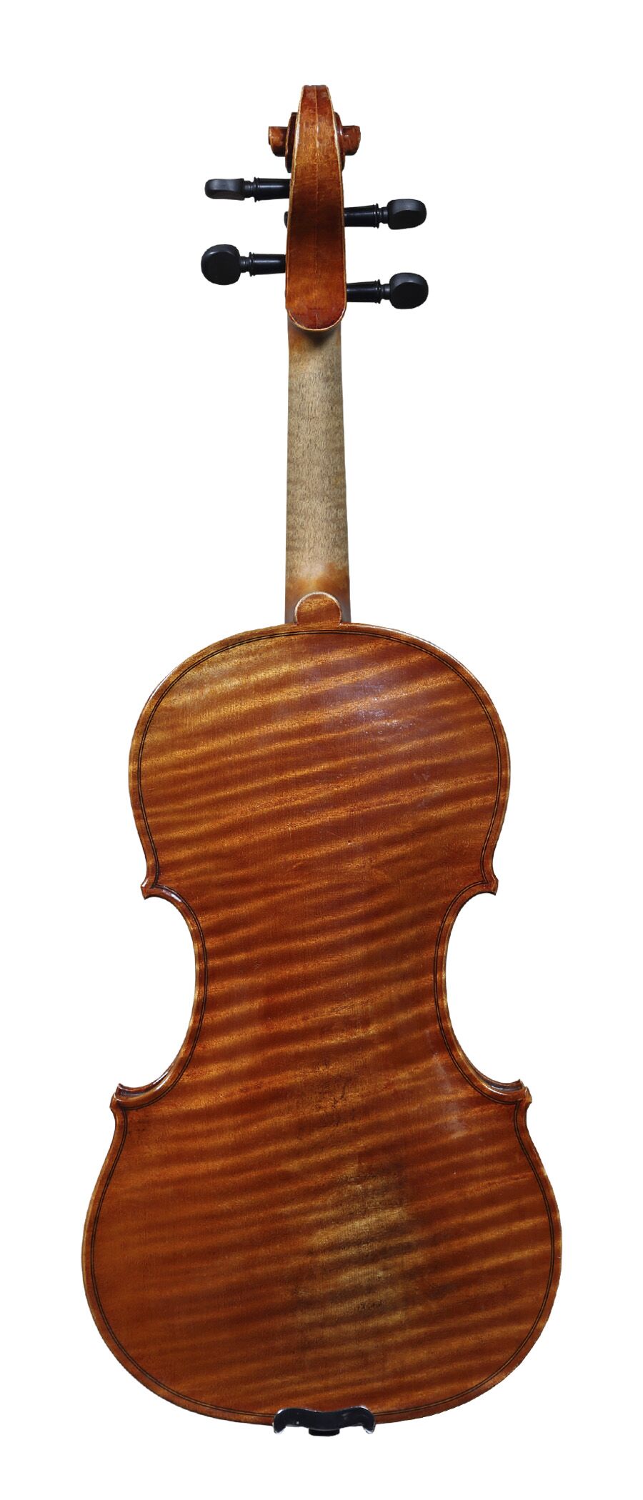 Passion, intention, dedication, and artistry personify the character and work of David T Van Zandt. An 1983 graduate of the Violin Making School in Salt Lake City, David has devoted his life to making violins and violas for string musicians. He patterns his violins and violas from studying original 17th and 18th century master instruments and learning from the musicians who play his instruments. This splendid 7/8 violin dressed with orange-brown varnish and medium flames ascending on the one piece back will easefully accommodate your next violin concerto or fiddle dance tunes. We adore the broad, powerful tone; the clarity of string crossings, a colorful tonal palette, and the sheer pleasure of playing this super comfortable violin!