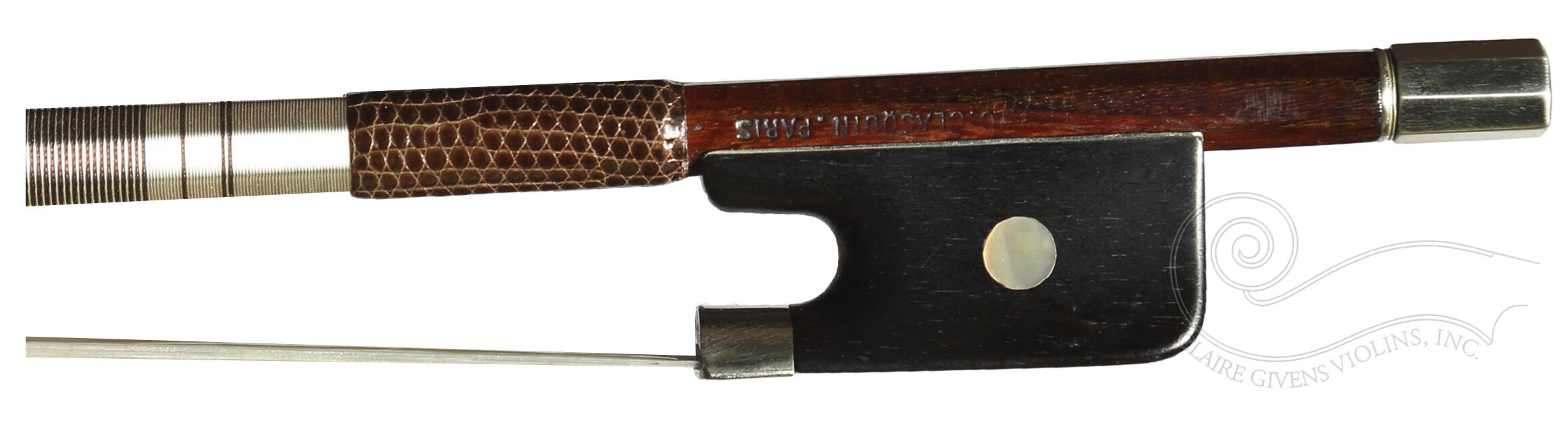 Celestin Emile Clasquin (b. 1875, d. 1928) was the son of Mirecourt violin maker F.E. Clasquin. C.E. Clasquin served his apprenticeship with C.N. Bazin, one of the fine Mirecourt archetier firms. In 1901 – 1906, his name is listed as a worker at the shop of Thibouville-Lamy where his bow making style adhered to the requirements of his employer which were based on the Voirin-Lamy models.