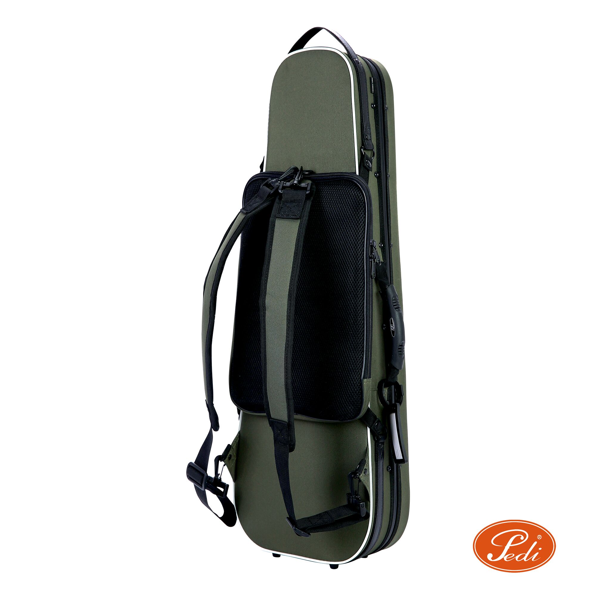 The Pedi Nightflash case is extremely light and sturdy. It has a reflective strip along the edges of the case that reflects light. This makes them safer when carrying at night. This case is also water resistant. With help from a YKK water-resistant zipper it keeps water from seeping into the case. This case is spacious on the inside providing plenty of space for any accessories you may want to carry, a music pocket on the outside for convenience, and backpack strap capability for added comfort.